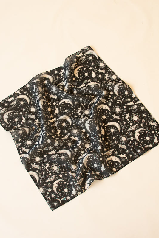 Black Celestial Silk Scarf
