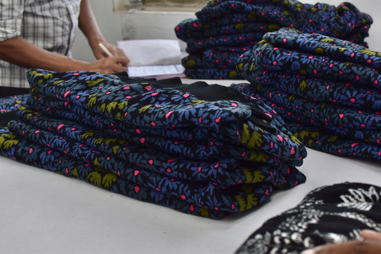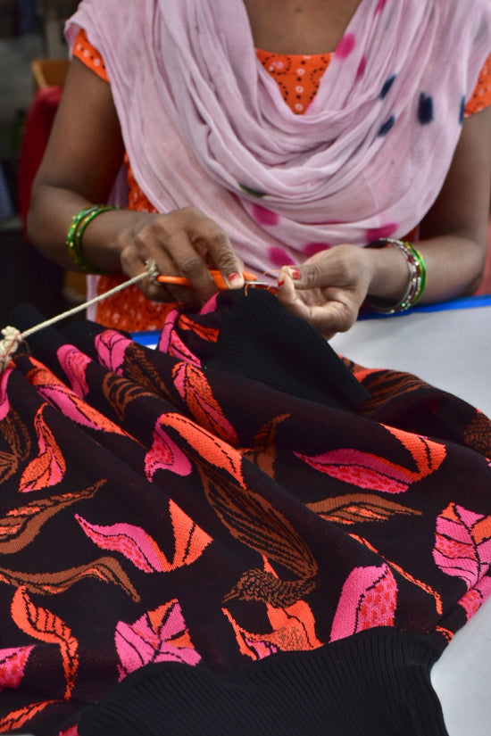 Live from our production house, Nasrin is putting the finishing touches on our upcoming knit collection—a mix of warm and cool-toned prints you know and love. Here’s an exclusive sneak peek into the process of turning bold prints into soft knits that you’ll want to wear all season long.