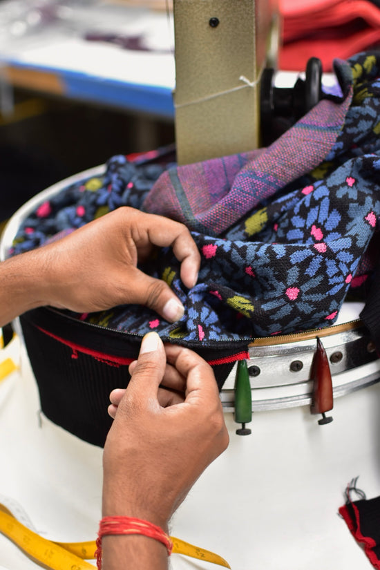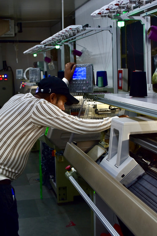 Once the yarn is ready, it’s loaded onto state-of-the-art Japanese Knitting machines that knit the printed panels. These automated machines run with precision, overseen by a skilled team who monitor every detail.