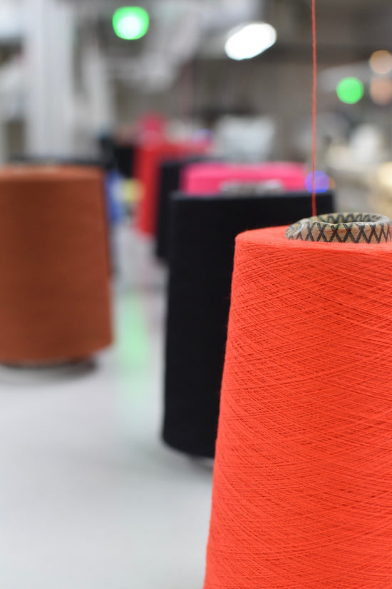 Every sweater begins with yarn. For each print, we carefully source fine cotton yarns which are dyed to our colors standards—ensuring vibrancy, softness, and durability from the very first step.