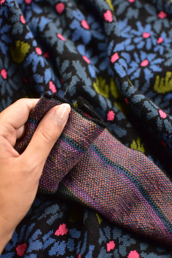 Our sweaters are made using different types of Jacquard knitting techniques, each one specialized to the number of colors and details of the particular print pattern—this technique reveals the full, bold print while the back shows the intricate interplay of yarn colors that create it.