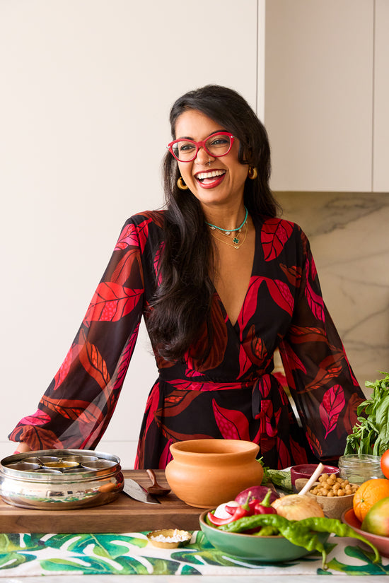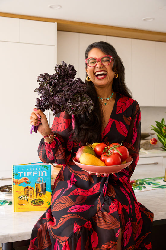 I am a first generation Indian, born & raised in NYC. My Indian roots make up my identity and are one of the main driving forces behind my love for food, cooking and caring for the environment. Ayurvedic philosophy on living, which uses nature to heal oneself and nourish oneself runs throughout my food and cooking choices. Everything I share in my book, online, on TV and at my live events in some way are always influenced by my culture/roots. My tips on using all of the produce or repurposing leftovers or making sure your dish is as colorful as it can be indicating a nutrient dense dish, are all directly from Indian culture. I’m not here to reinvent the wheel, but I am here to teach our new generations on techniques and traditions that are rooted in thousands of years of success. Cooking is a direct way for me to express my roots and it just so happens to be fun, connecting and delicious!