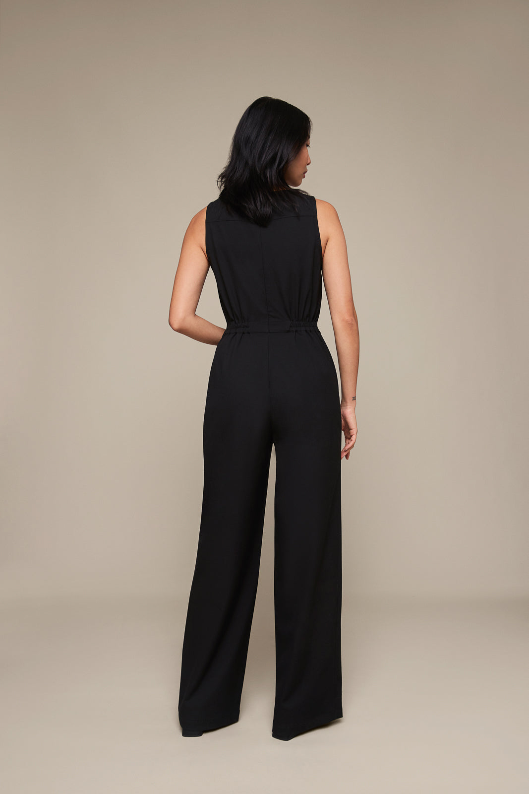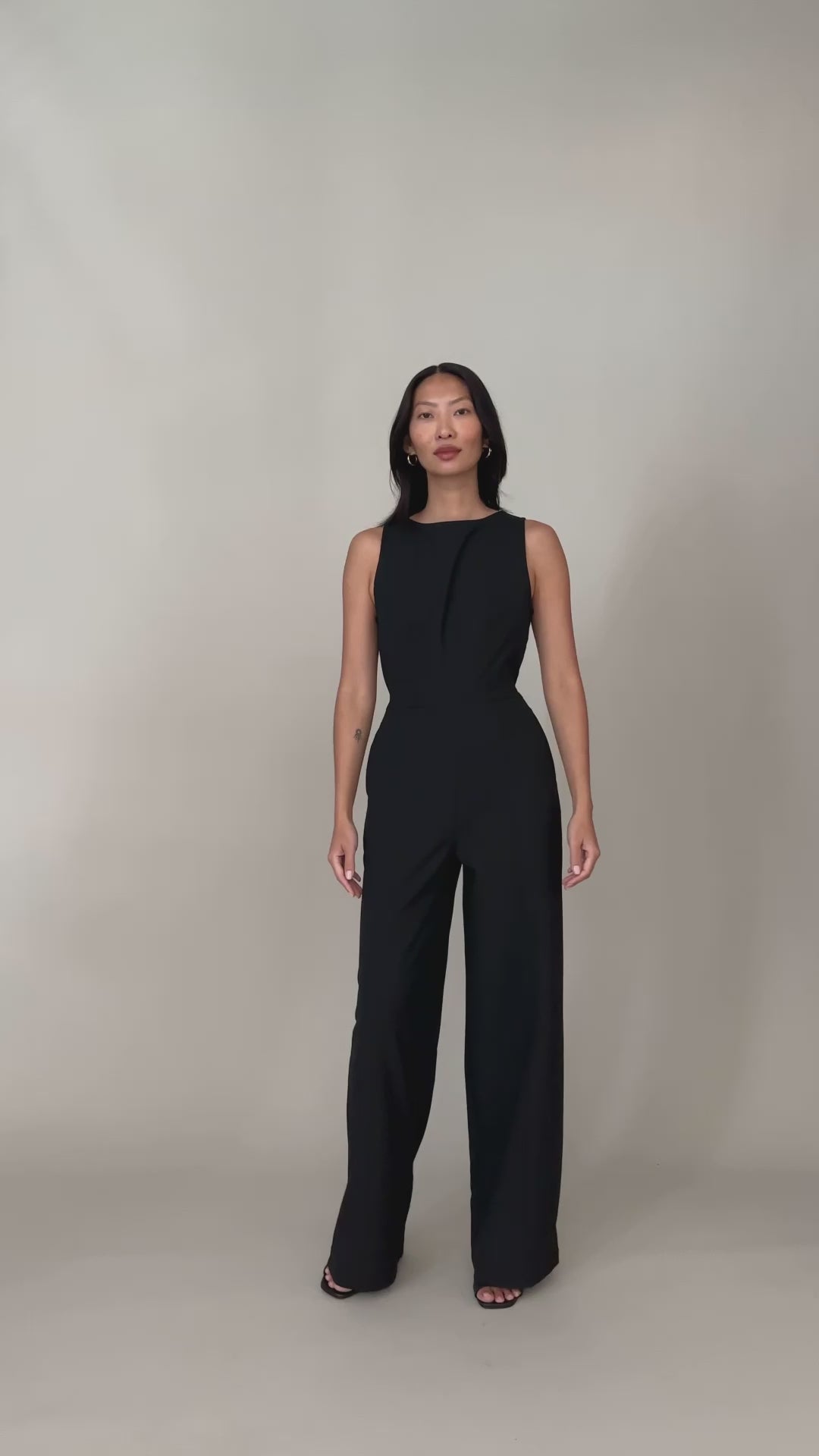 The perfect office jumpsuit. Designed with a boat neckline, wrinkle resistant stretch fabric, and a full-length, wide-leg pant, this piece transitions seamlessly from desk to dinner. Style with a blazer and heels or dress it down with sandals for an effortlessly chic look.