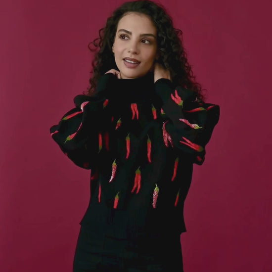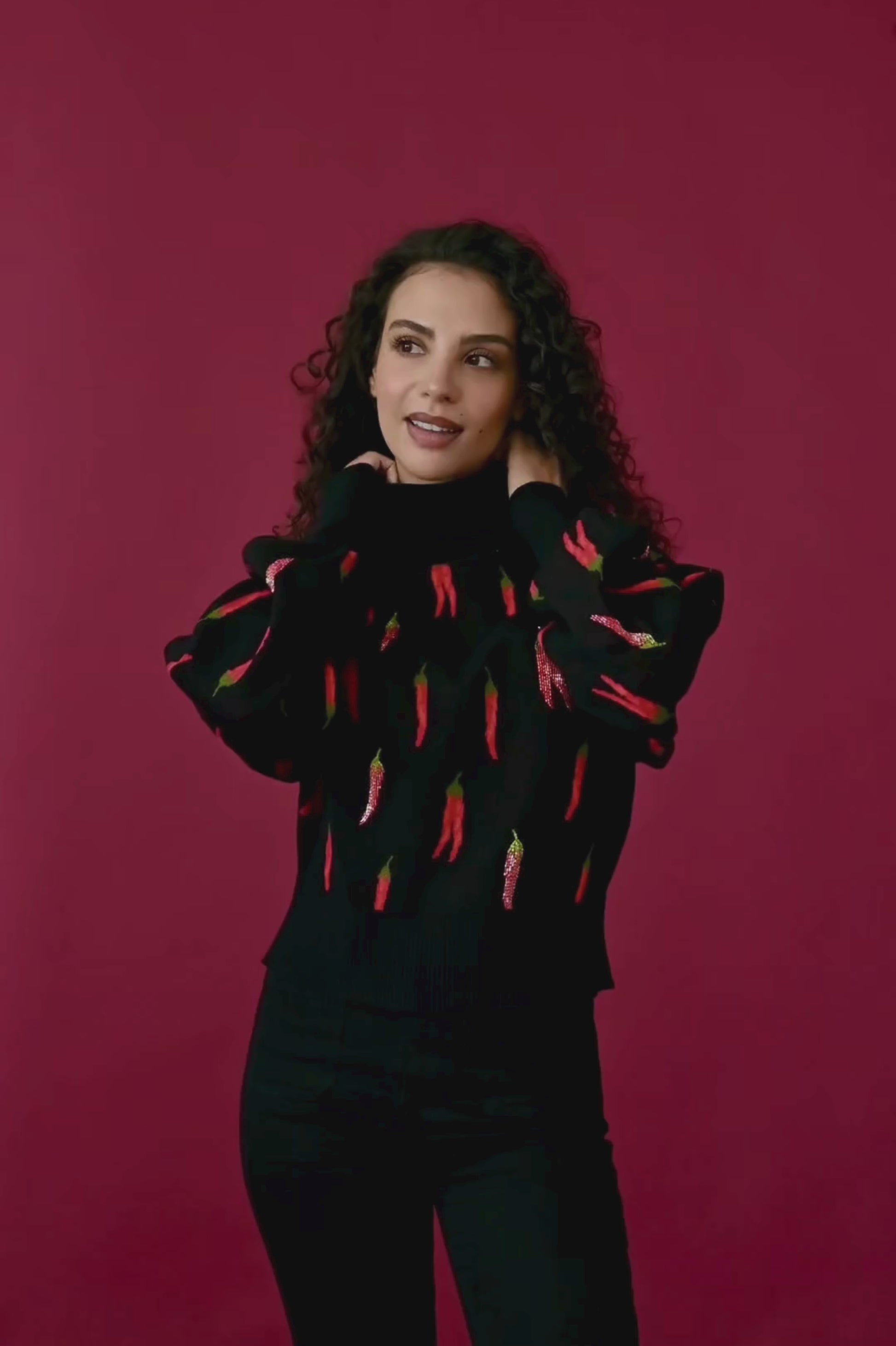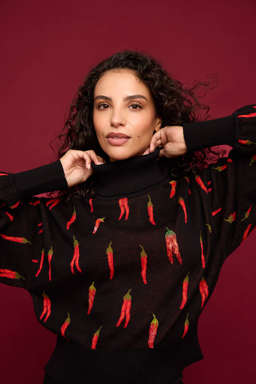 Our first-ever embellished sweater is here! Hand beaded by artisans, the Chili Sweater pairs our bestselling knit silhouette with a dash of spice and sparkle. Perfect for those who bring the flair to the party.