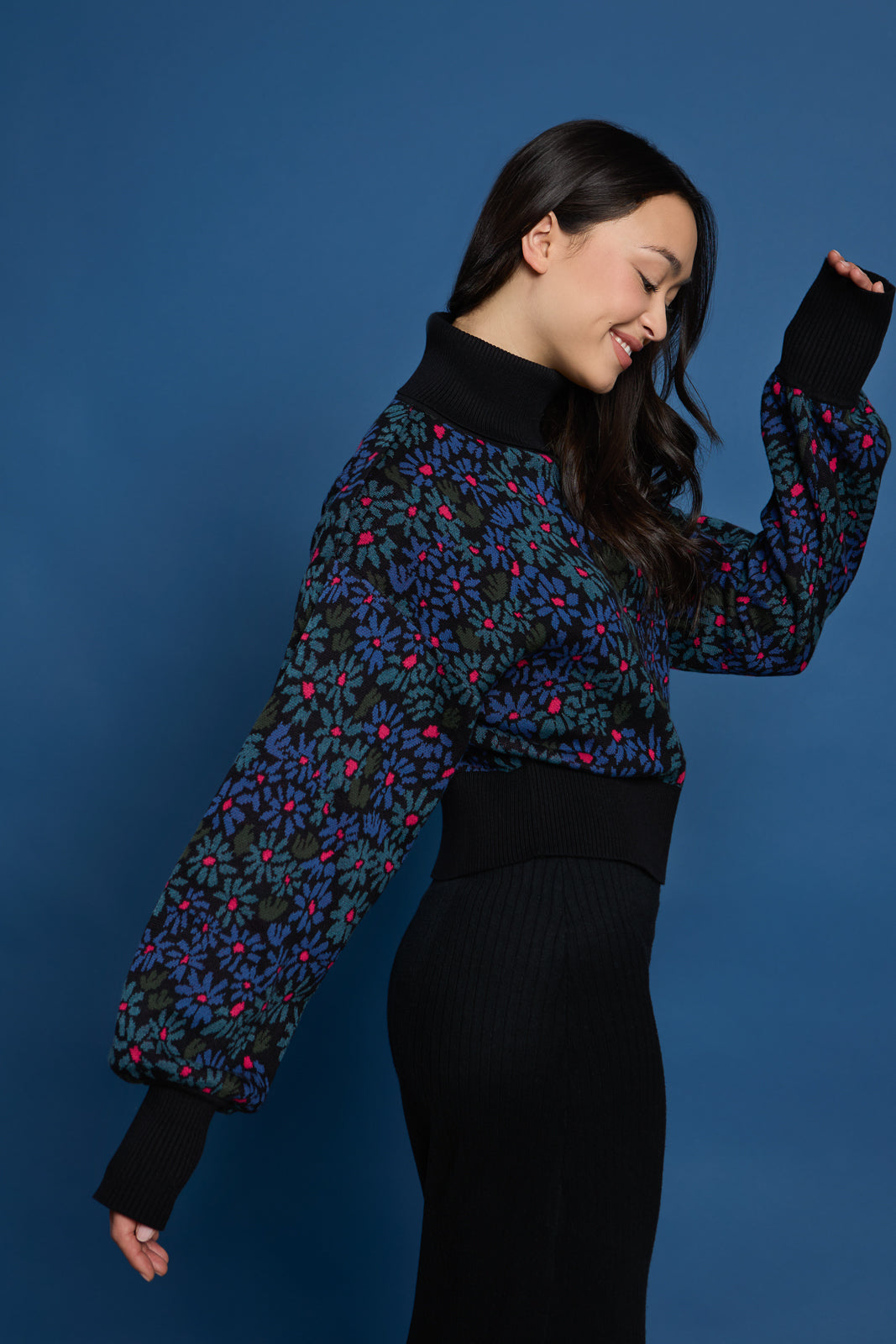 Get cozy in color this winter with the newest addition to the mix. Soft yet bold, the Blue Daisy Sweater will be your go-to statement top this season. Pair with our matching Blue Daisy Scarf to make it a set!