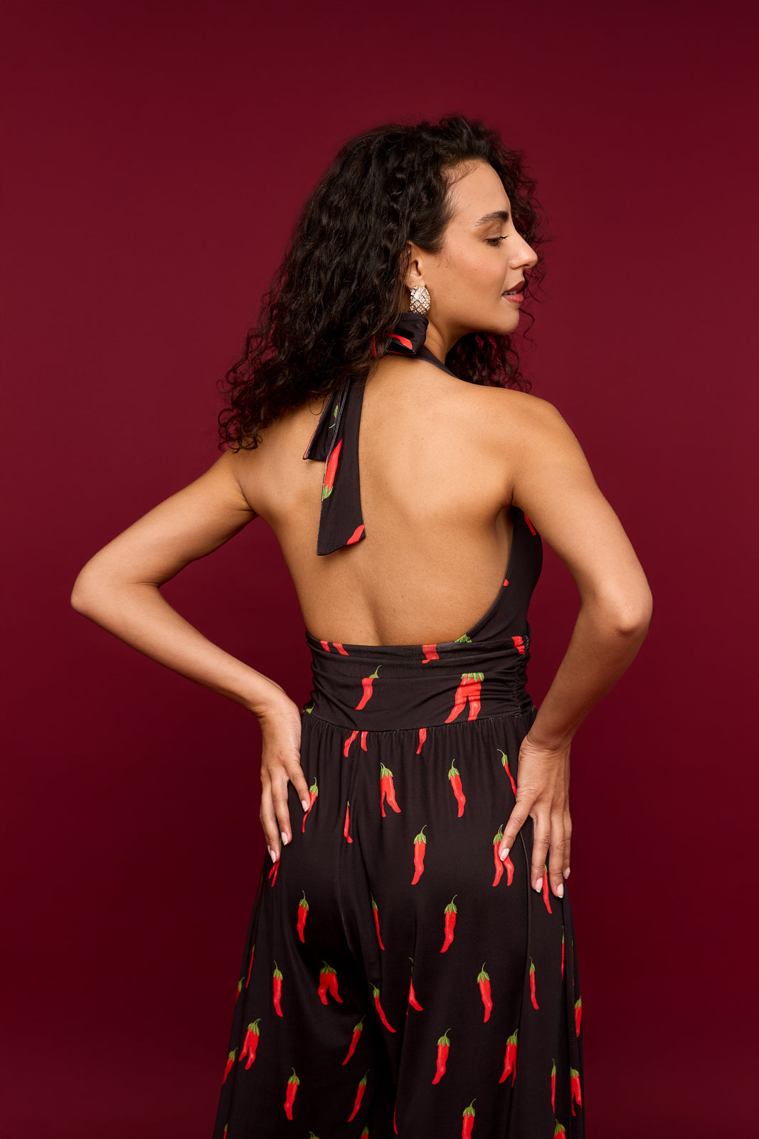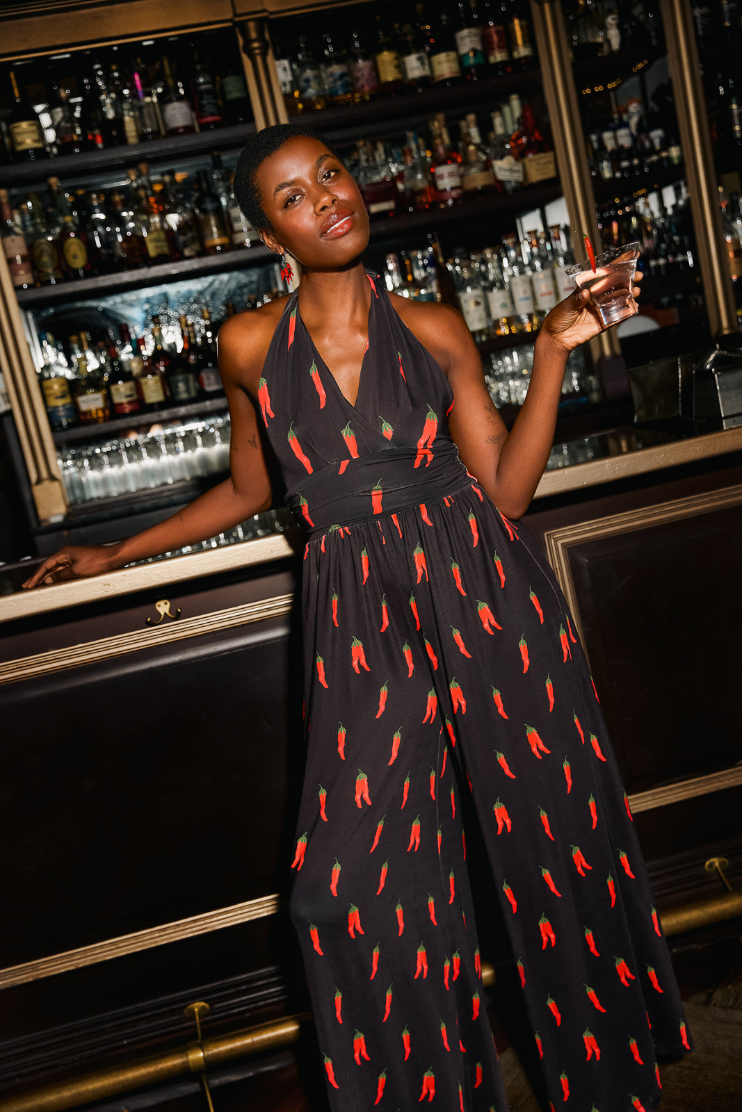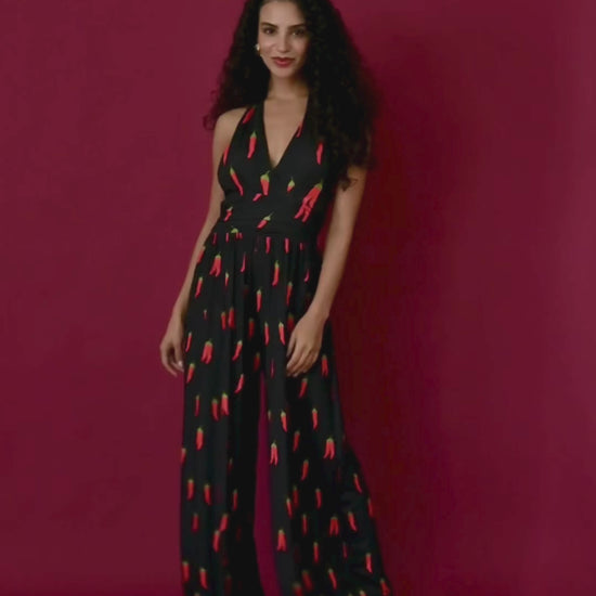 Stun at every event this holiday season. The Indira Jumpsuit is a statement piece made with comfort and elegance in mind. Crafted from soft and stretchy, wrinkle-resistant fabric, this jumpsuit is both effortless and impactful.