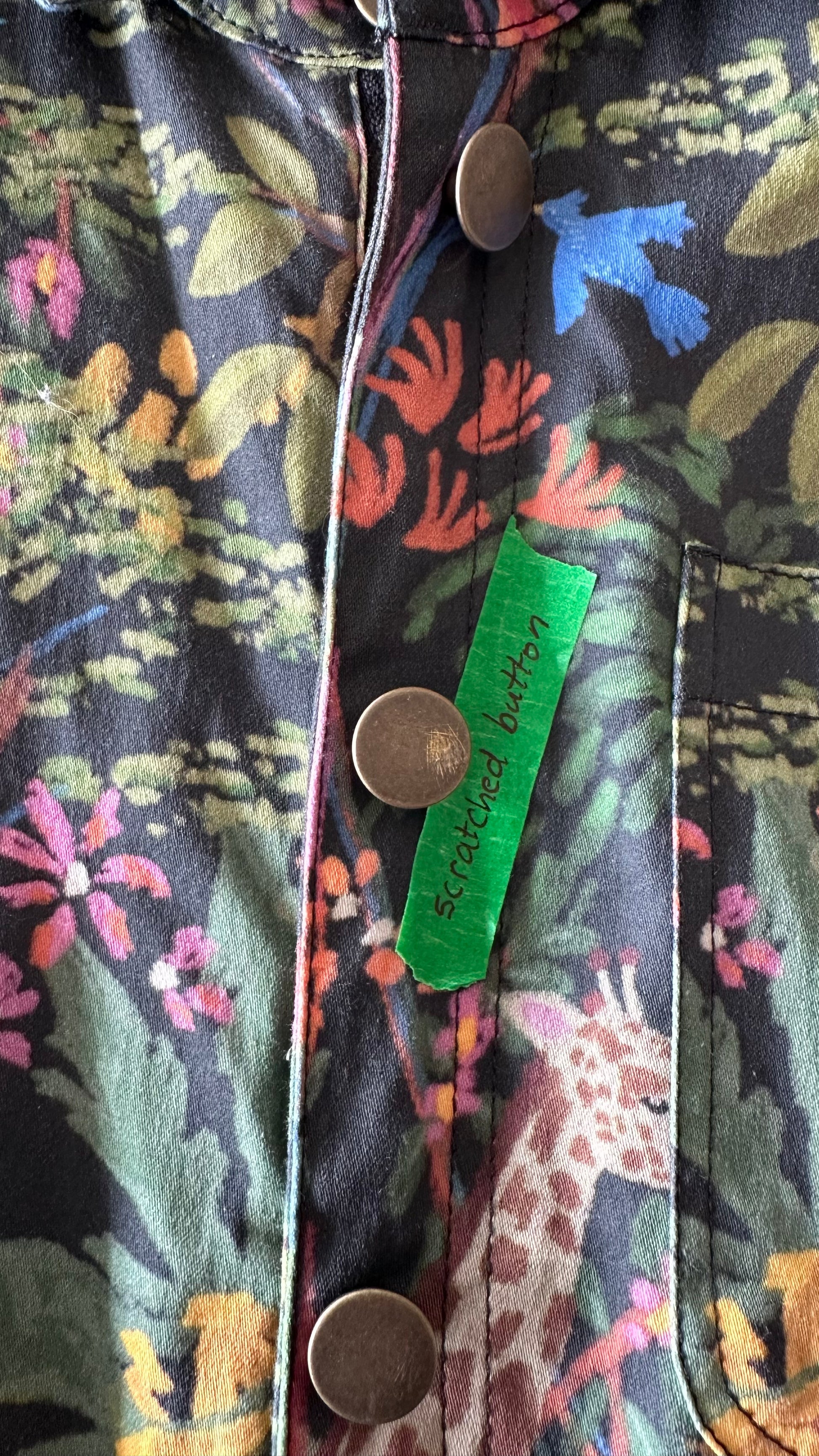 Our Jungle jumpsuit is a fitted jumpsuit with a clean silhouette, cropped leg and tapered hem. The cotton fabric has beautiful structure and a surprising amount of stretch that makes her comfortable to wear all day long. The zipper front makes her easy to pop on and the elastic waistline allows for flexible fit.