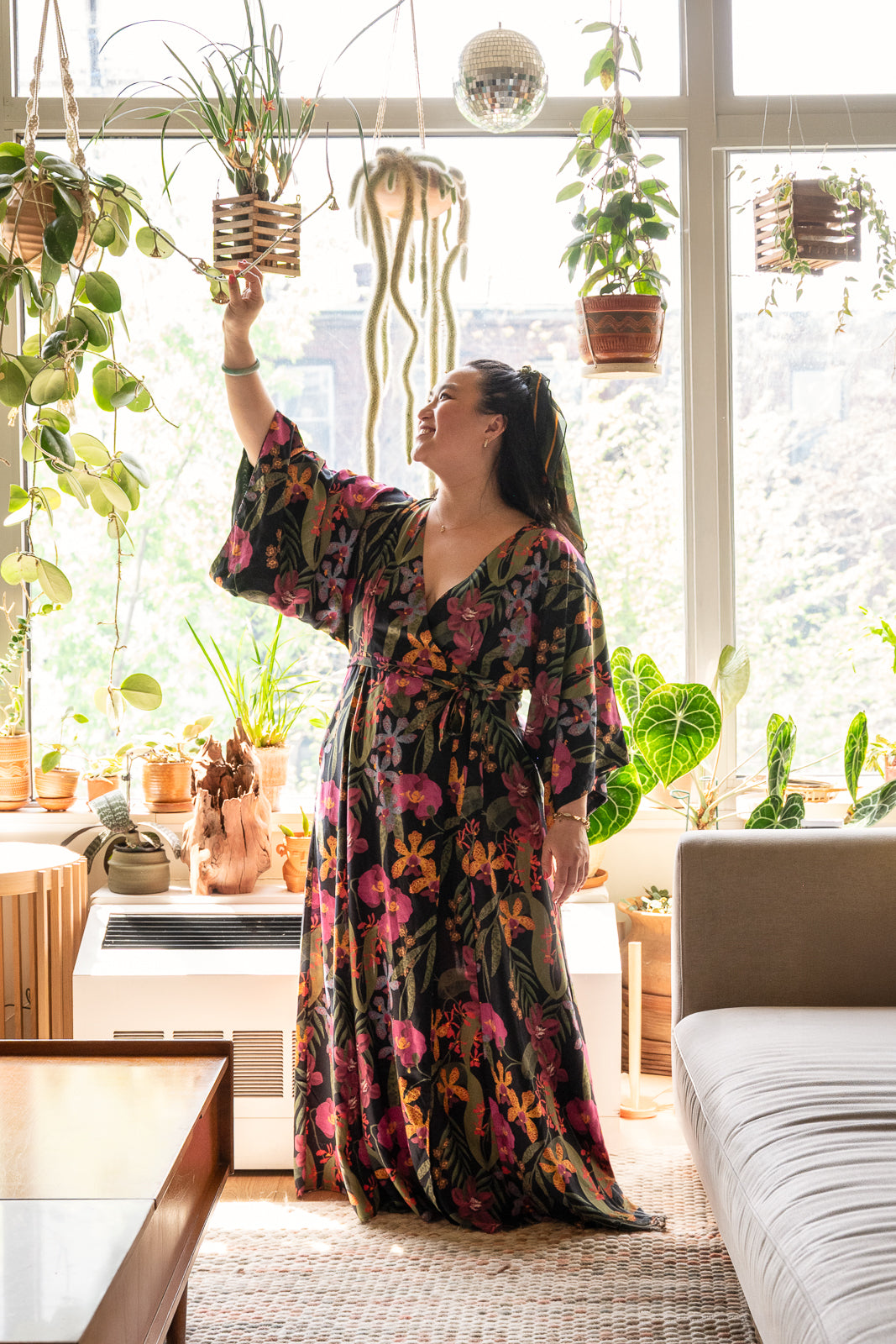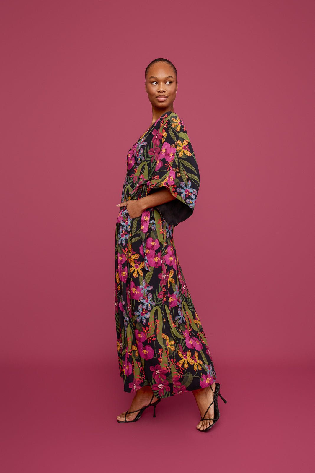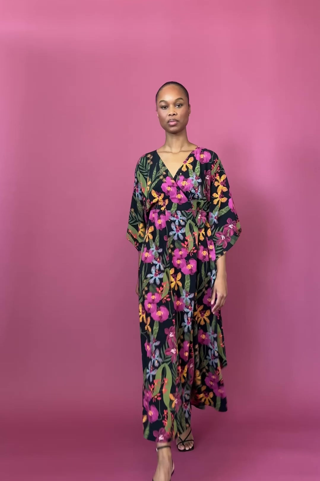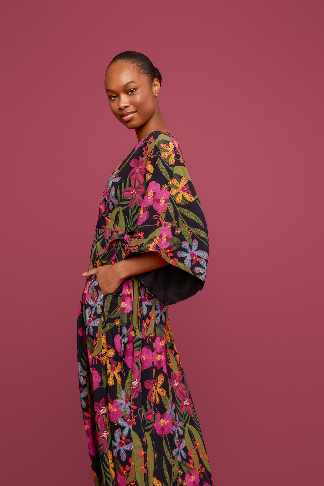 Distinct, bold, effortless. Designed with a kimono sleeve, flowy full-length skirt, and pockets, the Orchid Maxi Dress is a versatile statement piece. Perfect for everything from weekend brunch to your next wedding, she's a show stopper in every season. Style with our Orchid Scarf.