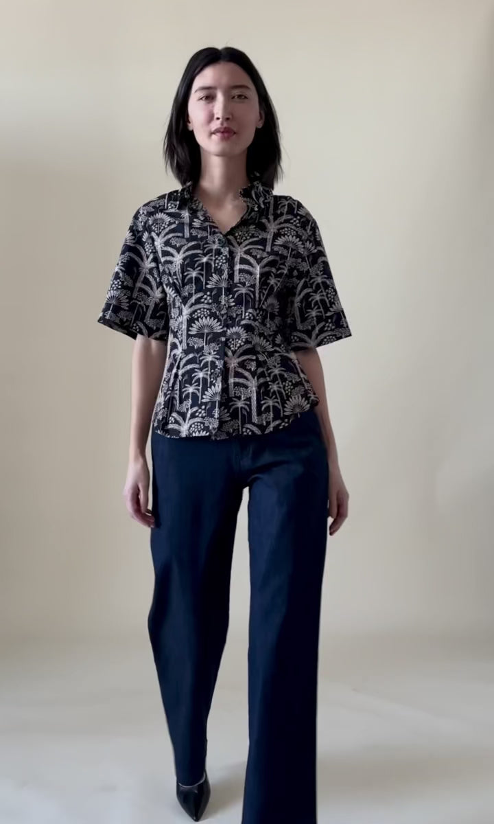 Sharp, modern, distinct, and strong. The KQ Button up has just the right balance of feminine and masculine personality, with its wide, elbow length sleeves, structured cotton, and pleated waist detailing to give the silhouette shape. An iconic style for the fast-moving person who dresses artfully and makes a memorable statement wherever they go.