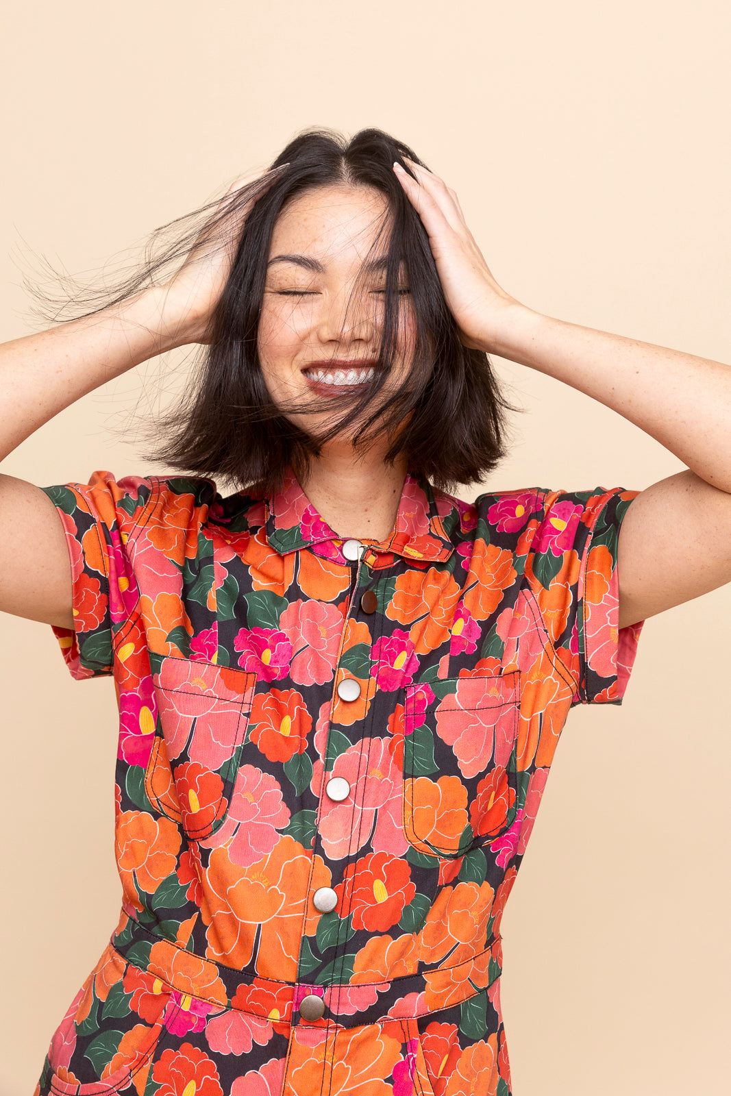 We spent 142 hours (yes, we counted) perfecting the fit of this jumpsuit. Expertly tailored to have a clean, fitted silhouette with room in the hips and a cropped, tapered leg. The cotton fabric has beautiful structure and a surprising amount of stretch that makes it comfortable to wear all day long.